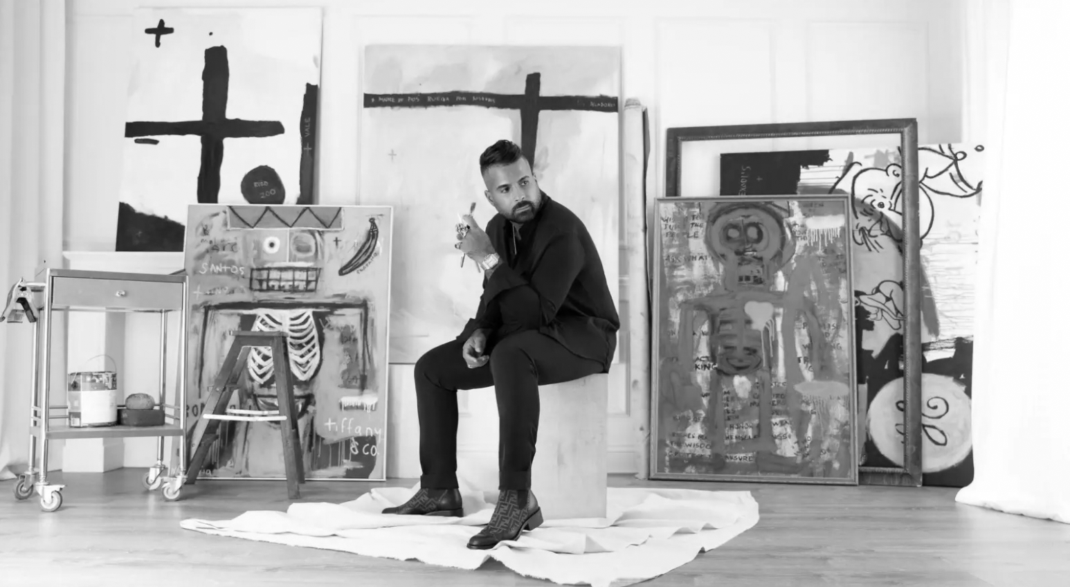 In 2018 he began traveling to Paris, Cuba, Dominican Republic & later Spain to study some of his favorite artists including Antonio Tapia, Guillo Perez, Pablo Picasso and others. In 2019, he was part of a group exhibition in Chelsea, New York “Danza De Monarca'' alongside artwork from Guillo Pérez & Guillo Perez III. Acosta’s influences include Cy Twombly, Caravaggio, Basquiat, Andy Warhol, Robert Motherwell, and Antoni Tàpies.