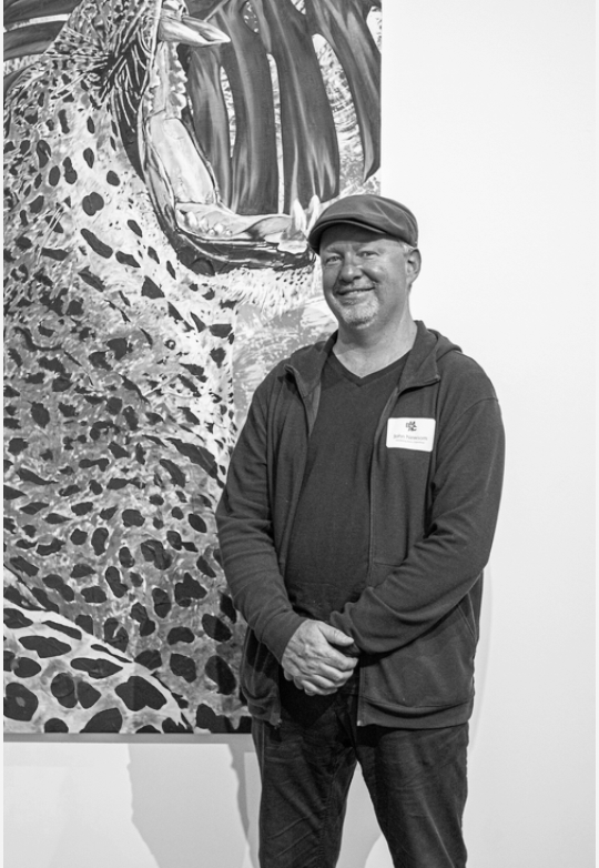 John Newsom is an American painter born in Hutchinson, Kansas. Newsom is best known for combining multiple techniques of formal painting strategies onto large-scale canvases, featuring dynamic spectacles of the natural world. In 1992 he completed his Bachelor of Fine Arts degree at The Rhode Island School of Design and subsequently moved to New York City, where he attended New York University’s studio arts program. He graduated with a Master of Fine Arts degree from NYU at the age of 24. Newsom has recently been the focus of several early-career survey exhibitions presented at notable institutions, including The Richard J. Massey Foundation for the Arts and Sciences in New York 2011-2012, as well as MANA Contemporary located in Jersey City, New Jersey - held in 2015. Published in a 2015 monograph of Newsom’s paintings, art critic Barry Schwabsky writes in his essay, “Beneath his thick and sensuous painted renderings of flora and fauna is a grappling with the giants of abstraction. What keeps ‘strong painting’ from becoming merely muscle bound - is Newsom’s secret weapon: the discipline that comes from considering himself, not a painter of images, but rather an abstractionist ... to appreciate his paintings is ... to engage with their surfaces of purely sensual incident.”