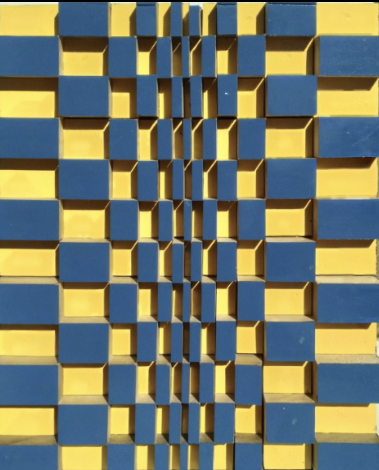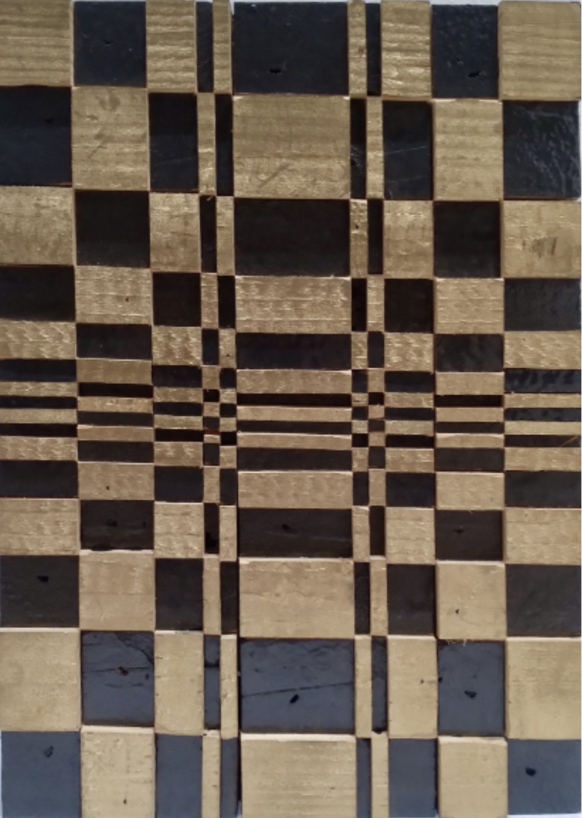 Wildeman creates intarsia like wall sculptures out of discarded building materials, metal, and furniture, transforming them into works of art that tell the stories of people and times. Through this approach to working with materials that have sentimental value, he creates pieces that connect intimately with the past. In his current series he explores op-art type designs that play with visual motion and movement. Wildeman works are collected internationally and have exhibited his works at prestigious institutions such as the John Peto Museum, Monmouth Museum, and the Noyes Museum. His artwork has been published in leading magazines, featured at TEDx events, and has appeared on national news syndications.